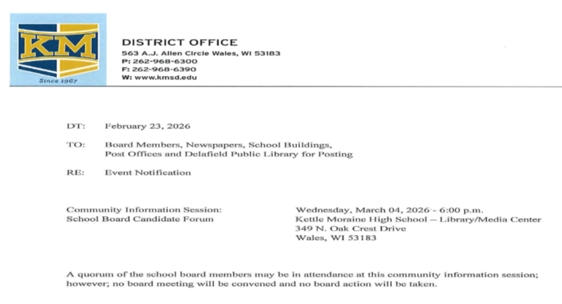 Posted on February 23, 2026, Edited February 23, 2026 by John J. Roth KMSD School Board Candidate Forum March 4, 2026
